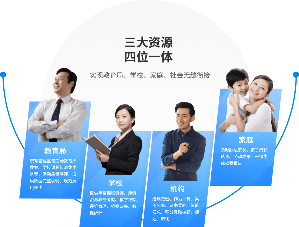聚焦青少年劳动教育,通过资源整合,为教育主管部门和学校,提供全 方位的劳动教育解决方案,促进区域中小学生综合素质高质量发展,为 青少年提供丰富的线上线下实践活动项目,举办劳动素养风采展示活动。